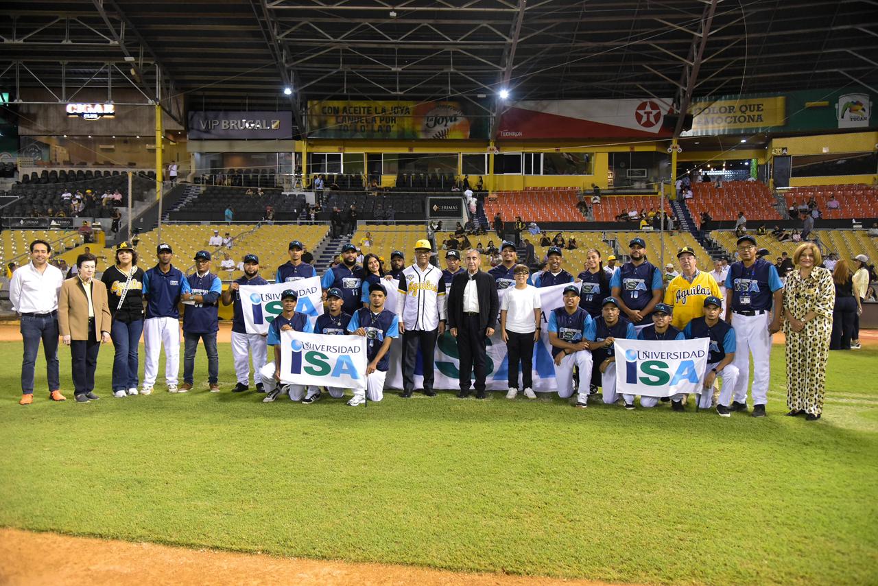 Asimismo, un equipo de estudiantes beisbolistas de la Universidad ISA, dirigido por el profesor Apolinar Peralta, participó en la ceremonia previa al partido.
