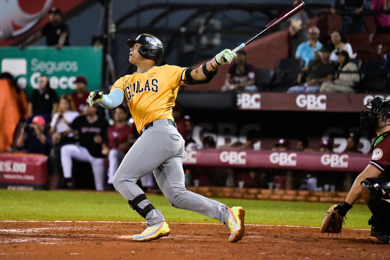 San Francisco de Macorís.- Ezequiel Durán demostró una vez más su ritmo de temporada MVP al conectar un doble y remolcar dos carreras para las Águilas Cibaeñas. Sin embargo, su aporte ofensivo no fue suficiente, y el equipo aguilucho terminó cayendo 7-3 ante los Gigantes del Cibao en un encuentro de la Liga de Béisbol Profesional de la República Dominicana, celebrado este viernes en el Estadio Julián Javier.