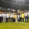 Santiago.– Incentivado por la presencia de cuatro de sus nietos, que le hicieron marco en el montículo, el doctor Leonardo Aguilera realizó el lanzamiento...