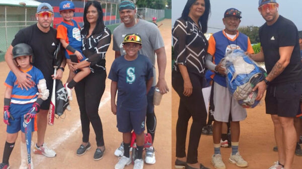 SANTIAGO.- En un gesto de altruismo, los lanzadores cubanos de las Águilas Cibaeñas, Yunesky Maya y Roenis Elías, regalaron útiles deportivos a la Liga...