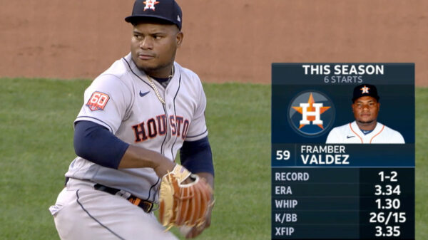 SANTIAGO.- El zurdo de los Astros de Houston, Framber Valdez lanzo 7 entradas y 2 tercios de 1 carrera y 6 ponches para guiar...