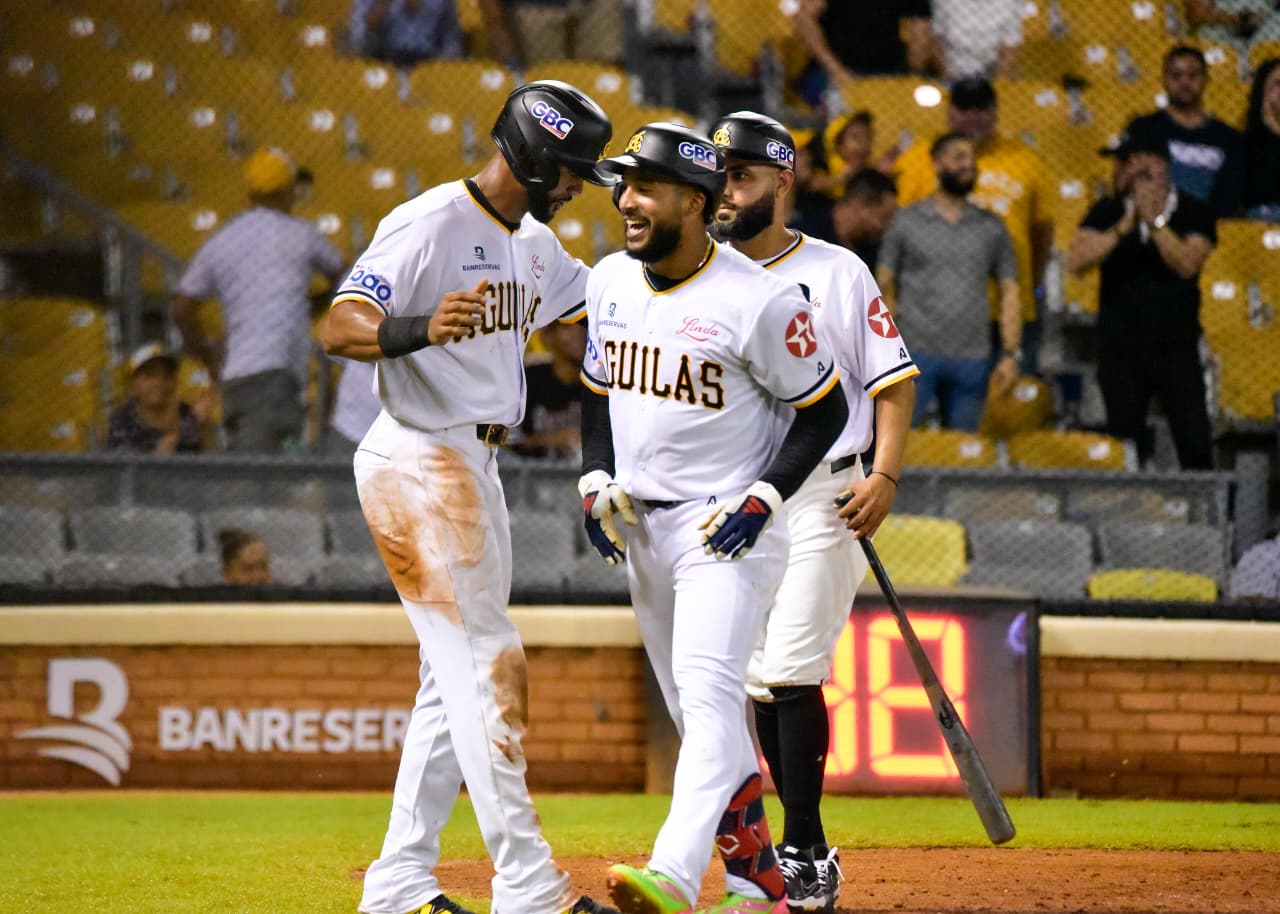 La ofensiva de las Águilas fue encabezada por Emmanuel Rodríguez, con cuadrangular; José “Popeye” Rodríguez, doble y sencillo; Juan Lagares, dos sencillos; Aderlin Rodríguez, Rayner Delgado, Alfredo Reyes, Webster Rivas, Ángel Genao y Eddy Leonard, un doble cada uno; y Leody Taveras, un imparable.